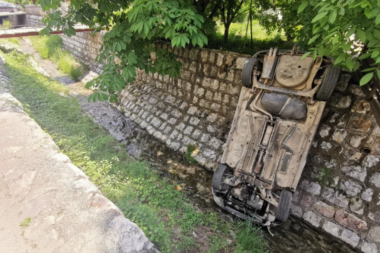 Nesvakidašnja scena iznenadila je Užičane koji su se našli u centru grada, kada su u kanalu ugledali prevrnut automobil marke "volskvagen polo" koji je završio na krovu.
