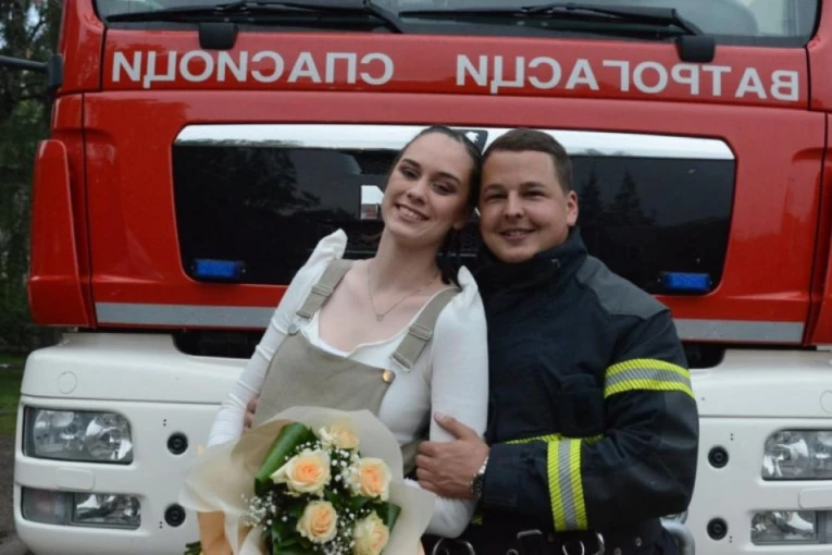 Jedna od najneobičnijih veridbi dogodila se u Kraljevu kada je vatrogasac-spasilac Stefan Kokotović zaprosio svoju devojku uz pomoć vatrogasnog aparata.