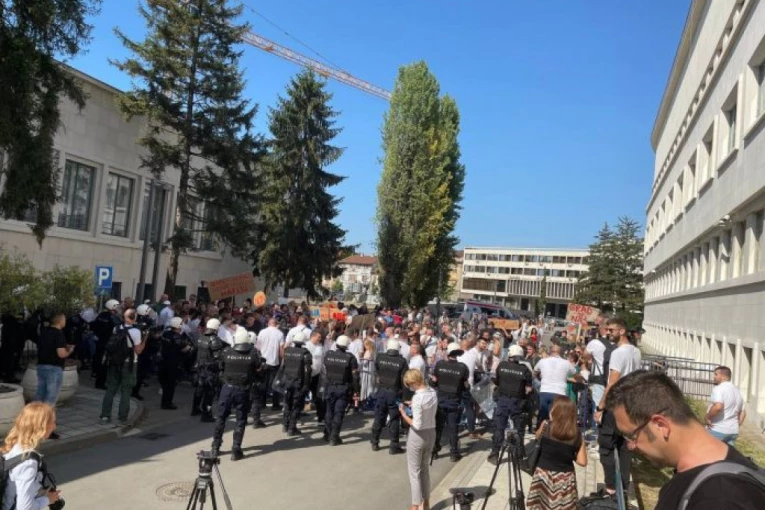 Posle sukoba sa policijom i pokušaja da se kordon probije, jedan od policajaca zadobio je povrede, a Hitna pomoć odmah je reagovala.Kako javlja NSuživo, ima povređenih.