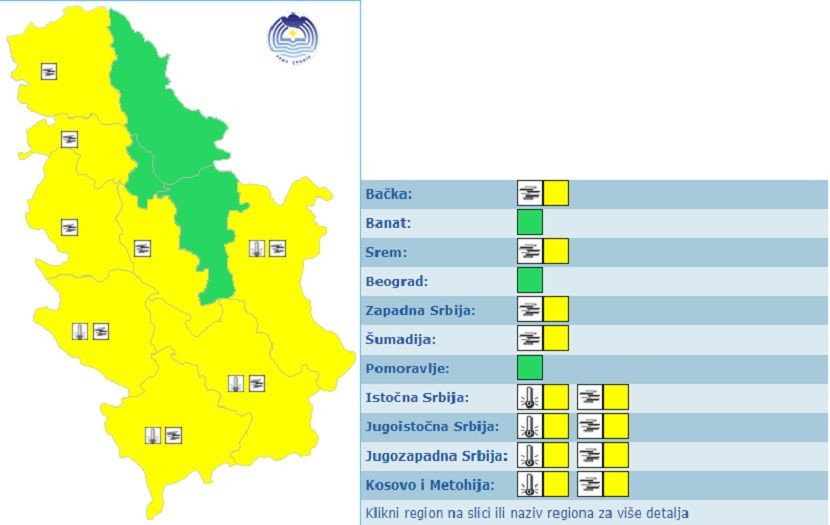 Izdato je i agrometeorološko upozorenje zbog jutarnjeg mraza.