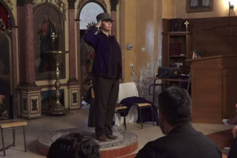 Glumica Vesna Stanković u ulozi Milunke Savić, naše najveće heroine i najodlikovanije žene u istoriji ratovanja na ovim prostorima, oduševila je publiku u porti Hrama.