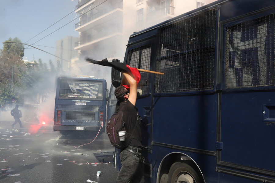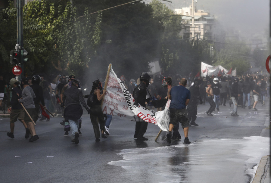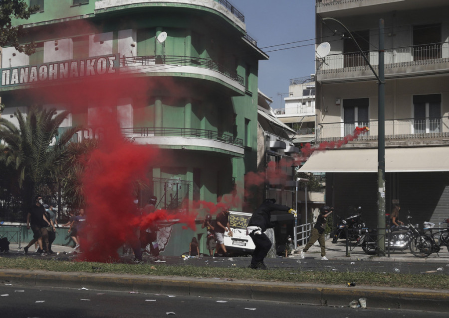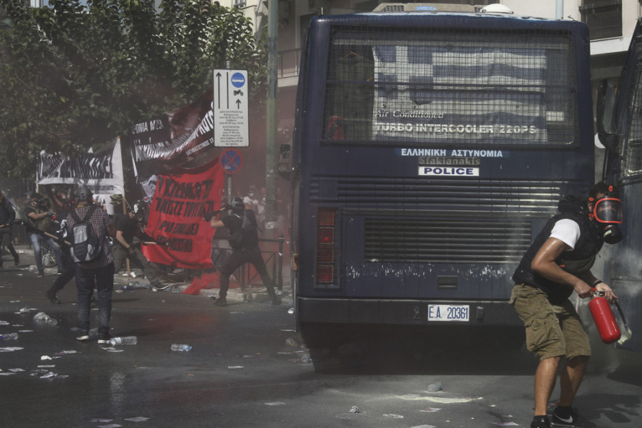 Došlo je i do sukoba policije sa grupom muškaraca. Drmonstranti, koji su nosili kapuljače, bacali su molotovljeve koktele, dimne bombe i razne druge predmete na policijske snage, prenosi grčki portal Katimerini.
