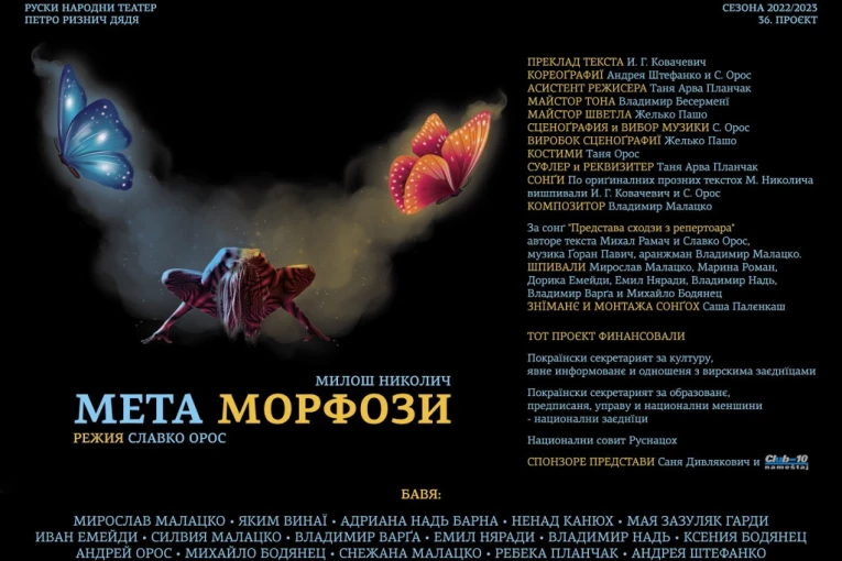 Premijera komedije “Metamorfoze” Pančevca Miloša Nikolića, u režiji Slavka Orosa, biće održana u subotu, 3. decembra u Rusinskom narodnom pozorištu “Petro Riznič Đađa” iz Ruskog Krstura.