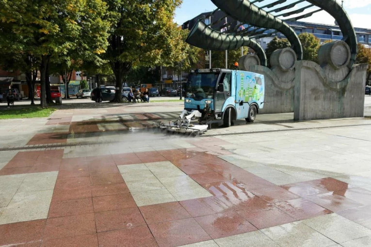 U toku je sveobuhvatna akcija čišćenja i pranja Gradskog trga u Rumi.