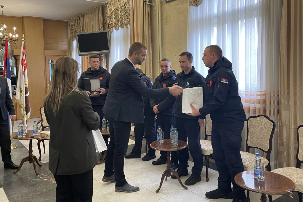 U Skupštini grada Kragujevca danas je priređen prijem za kragujevčke vatrogasce, članove Spasilačkog tima za spasavanje iz ruševina Sektora za vanredne situacije MUP-a Srbije, koji su učestvovali u spasilačkim operacijama posle razornog zemljotresa u Turskoj.