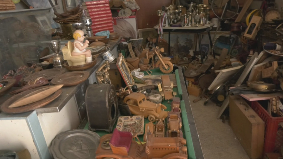 Police i ormari u njegovoj kući puni su raznih predmeta, i na samom ulazu stoji nemački šlem iz Drugog svetskog rata