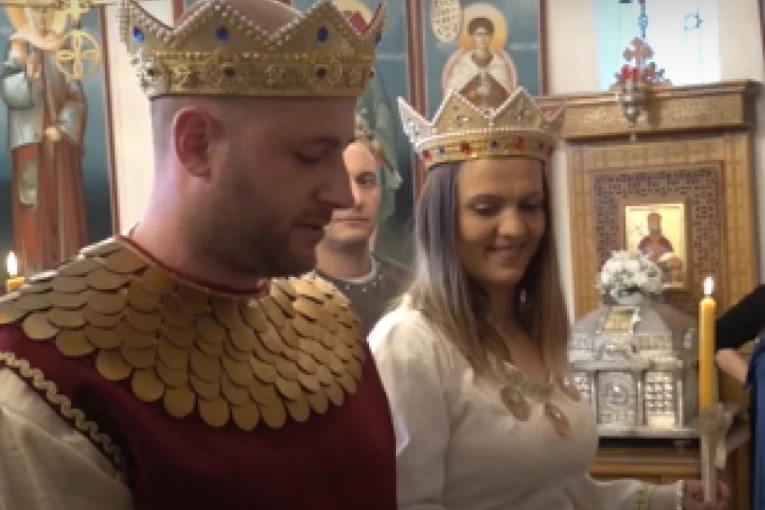 Oni su odlučili da se zavetuju na večnu ljubav odeveni u svečane odežde plemićkih porodica sredjevekovne Srbije, a u svadbenoj povorci bili su njihovi gosti kao vitezovi i dvorske dame.