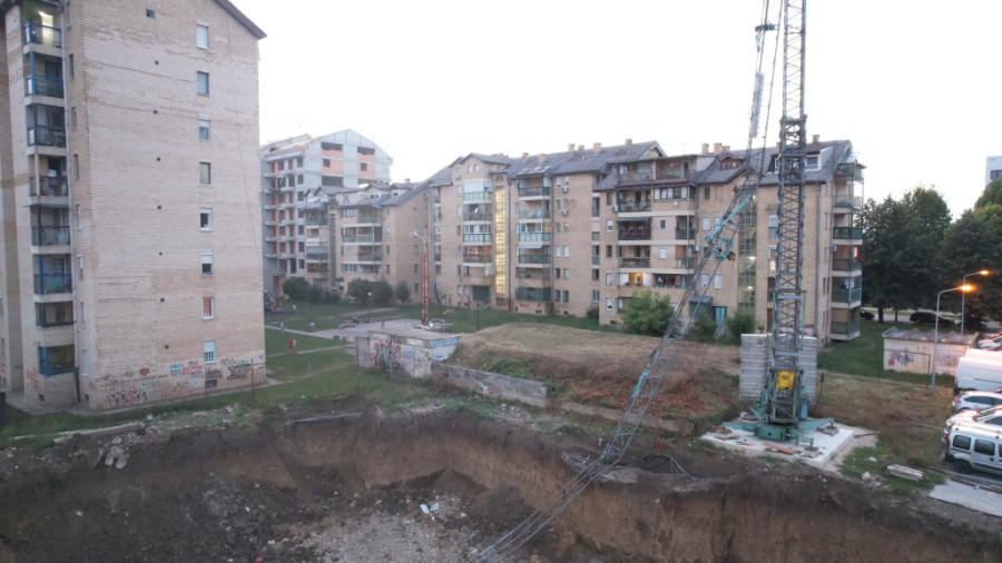 Prema informacijama koji stoje na tabli pored gradilišta na tom mestu je u toku izgradnja stambenog objekta od šest spratova.