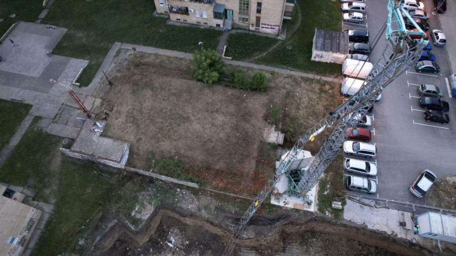 Prema informacijama koji stoje na tabli pored gradilišta na tom mestu je u toku izgradnja stambenog objekta od šest spratova