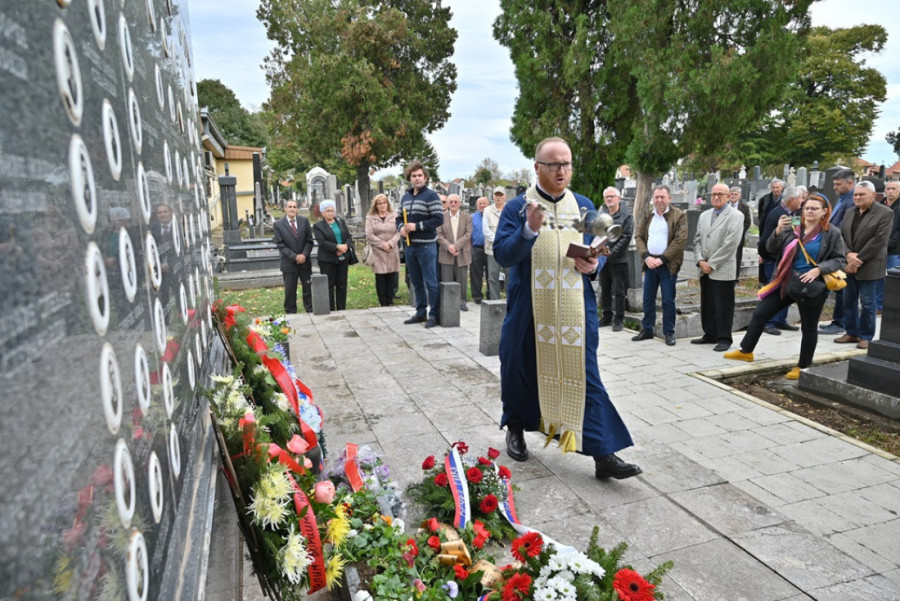 Jerej Đorđe Sančanin, paroh Vaznesenjske crkve, služio je opelo za žrtve Drugog svetskog rata na Gradskom groblju.