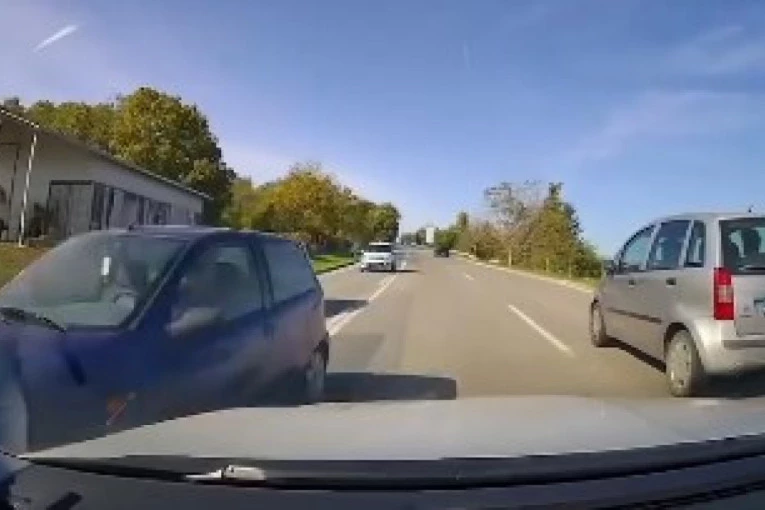 Na snimku se vidi automobil marke "punto" novosadskih registracionih oznaka kako "uleće" u makaze i skoro udara u automobil iz suprotnog pravca.