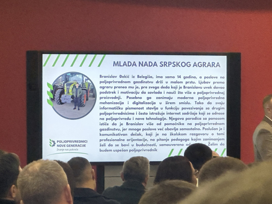 - Naše udruženje sa ponosom već četvrtu godinu zaredom dodeljuje nagrade za najbolje mlade poljoprivrednike iz Srbije. Naš cilj je da umrežimo mlade ljude da shvate da imaju prijatelja i partnera bez obzira u kom delu Srbije žive. Da uspostavimo mrežu mladih poljoprirednika kako bi svi dali svoj zajednički doprinos sektoru agrara, jer je poljoprivreda jedna od najvažnijih oblasti, rekao je Goran Eror iz udruženja Poljoprivrednici nove generacije.