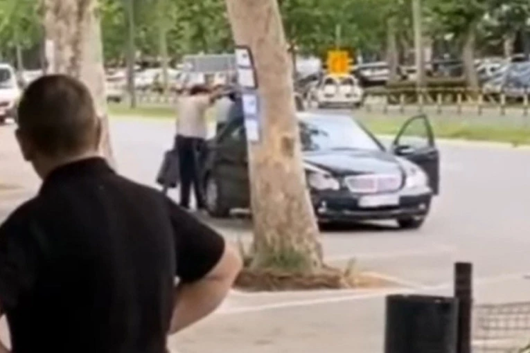 Automobil “mercedes” zaustavio se usred dana na Bulevaru Nemanjića. Vozač je zatim uzeo kantu za smeće sa trotoara, stavio u gepek i odneo je.