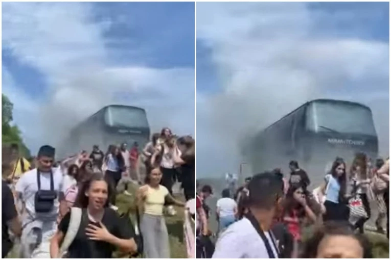 Ekskurzija pretvorena u horor: Autobus pun dima, deca iskaču, vozilo potpuno izgorelo! Pogledajte (VIDEO)