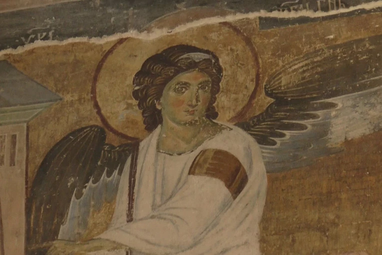 - Beli Anđeo je freska koja je naslikana negde između 1222. i 1235. godine. Ono što je bitno jeste da je to 13. vek. U jednom periodu bila je prekrivena slojem iz 16. veka, i upravo taj sloj ju je sačuvao sve do 1863. godine, kada je freska otkrivena prilikom obnove Mileševe. Freska prikazuje arhangela Gavrila kako sedi na velikom kamenu odvaljenom od groba i ženama mironosnicama pokazuje da je grob prazan, da je Gospod vaskrsao, pobedio smrt i darovao nam život. Dao nam je priliku, ako mi to želimo da je iskoristimo za svoje spasenje. Ispod njegovih nogu prikazani su vojnici. Oni su bili zaduženi da čuvaju grob, ali nisu bili dostojni da vide Vaskrsenje - kazala je za RINU mati Paraskeva.