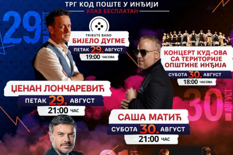 Subota, 30. avgust, rezervisana je za bogat kulturni i muzički sadržaj. Od 18 časova biće održan koncert kulturno-umetničkih društava sa teritorije opštine Inđija, dok će veče zatvoriti nastup popularnog pevača Saše Matića u 21 čas.