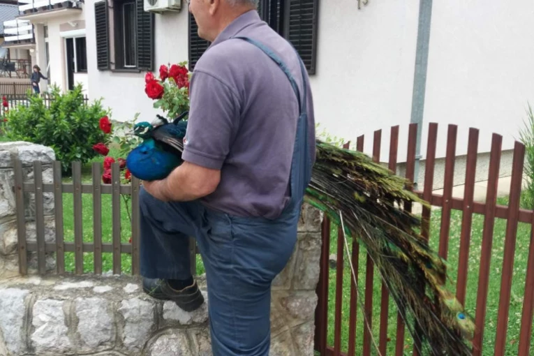 Na krov porodične kuće u Čačku doleteo paun: Neobičnog gosta domaćini sklonili na sigruno