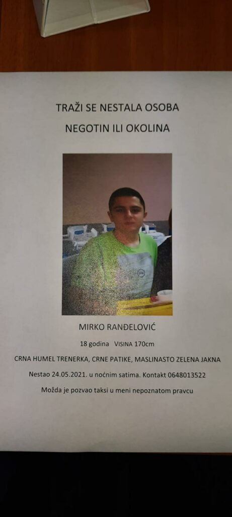 Tinejdžer Mirko Ranđelović nestao je 24. maja u noćnim satima.