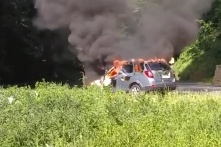 Požar je zahvatio vozilo na penjanju za Iriški venac iz smera Novog Sada, a putnici su srećom prošli bez povreda.