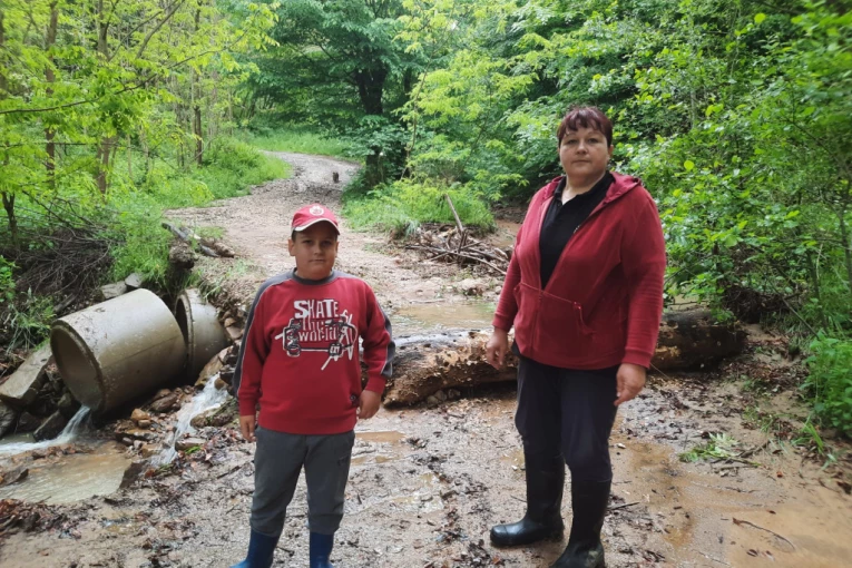 – Voda se malo povukla, ali nas je strah od ove nove najavljene kiše, samo je pitanje trenutka kad će potok odneti ceo put. Jaka kiša praćena vetrom ostavila je iza sebe pustoš, a šiblje i granje ušlo je i u vodovodnu cev, pa sad nemamo ni vode. Sin mi nije danas otišao ni u školu, kako će biti dalje ništa ne znam. Ovuda se automobilom ne može preći, a i peške je jako teško, bez gumenih čizama nikako – rekla je Ruža Nikolić za RINU.
