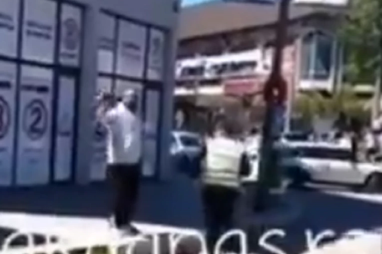 Na snimku se vidi i policajac koji mlakom reakcijom nije uspeo da obuzda pomahnitalog muškarca, a čak mu je prišao veoma blizu i time je mogao da ugrozi i svoj život.
