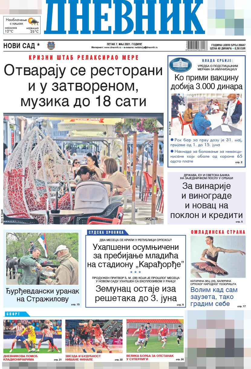 Dnevne novine u Srbiji za petak 7. maj 2021. godine, na naslovnim stranama najavljuju brojne aktuelne društveno-političke teme i donose ekskluzivne priče.