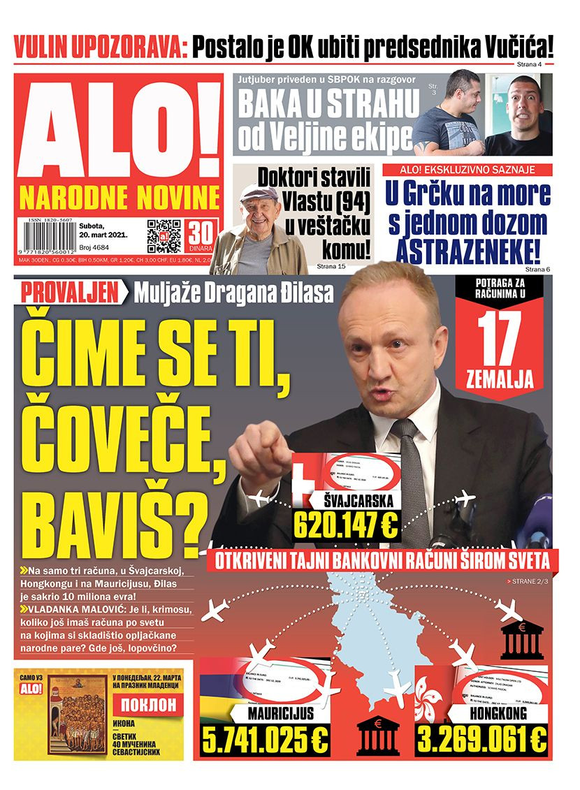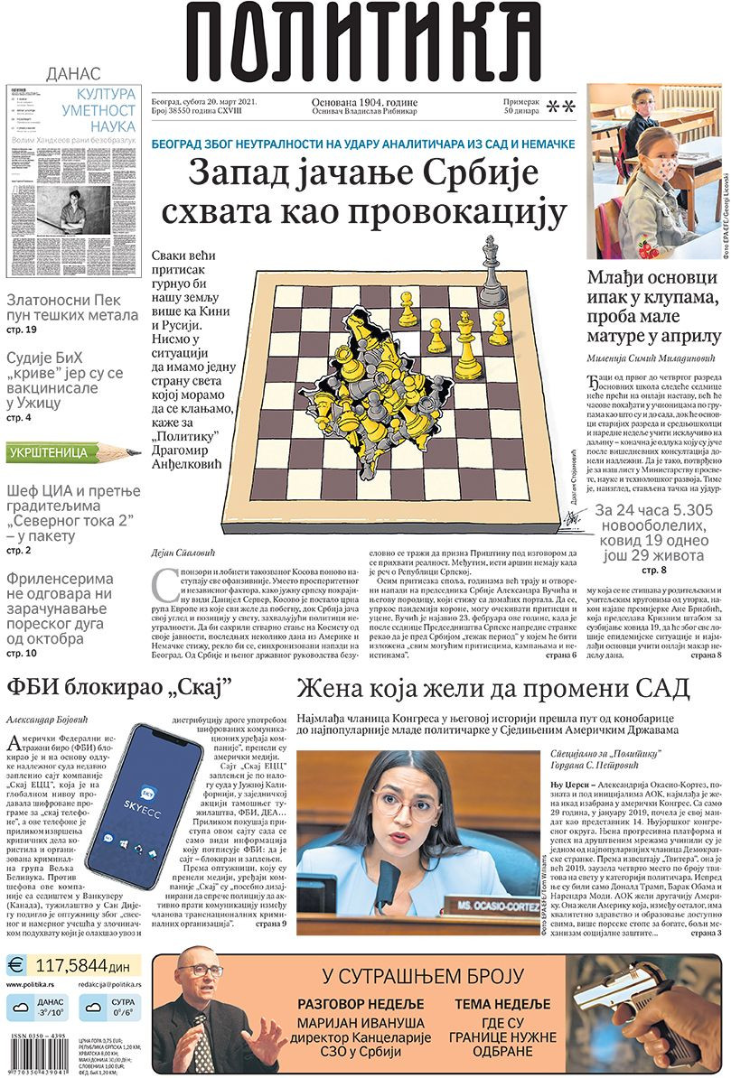 Dnevne novine u Srbiji za subotu, 20. mart 2021. godine, na naslovnim stranama najavljuju brojne aktuelne društveno-političke teme i donose ekskluzivne priče.