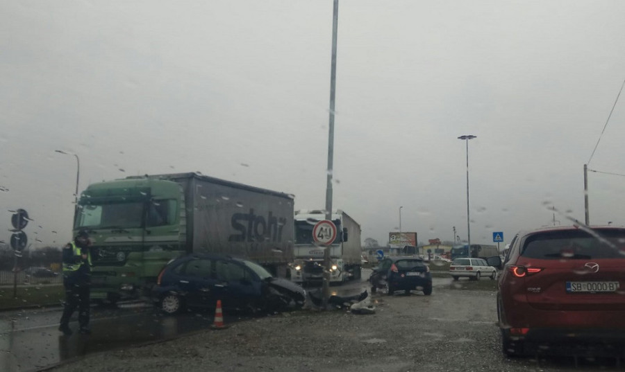 Automobil marke “citroen C3” i kamion sudarili su se danas oko 10 sati na Ibarskoj magistrali u mestu Adrani, kod Kraljeva.