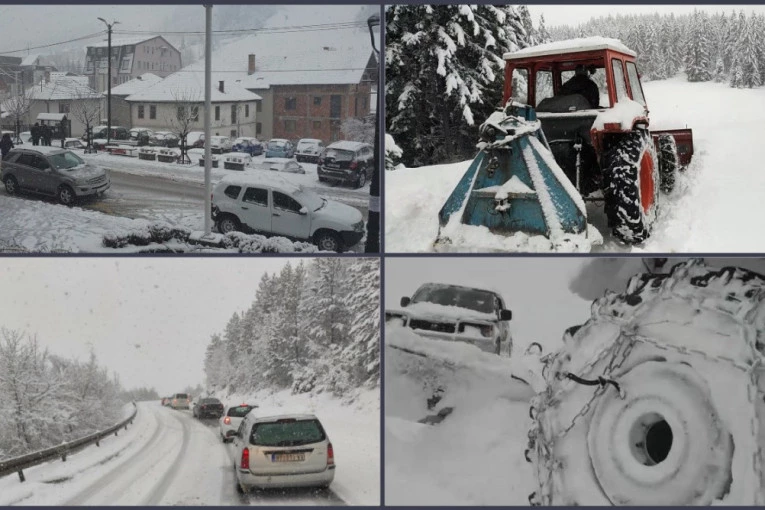 Sneg koji neprestano pada od sinoć formirao je pokrivač oko 40 centimetara na Zlatiboru, saobraćaj na magistralnom putu ka Crnoj Gori odvija se usporeno, naročito na području Borove glave.