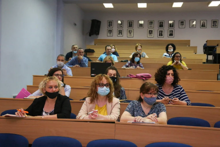 U amfiteatru VŠSSOV u toku je obuka za polaganje ispita za licencu za direktore ustanova obrazovanja i vaspitanja. Okupljene direktore okruga pozdravila je Milena Živkov, članica GV za obrazovanje i kulturu.
