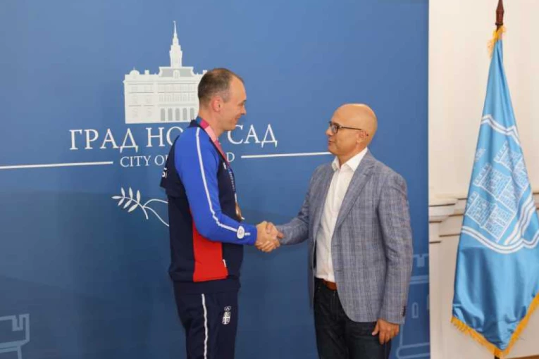Gradonačelnik Novog Sada Miloš Vučević sastao se u Gradskoj kući sa strelcem Milenkom Sebićem, koji je na igrama u Tokiju osvojio bronzanu medalјu za Srbiju.
