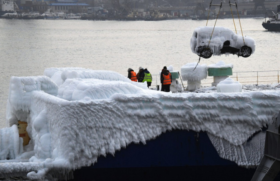 Japanske automobile zahvatila je, na putu ka Rusiji, snažna ledena oluja.
