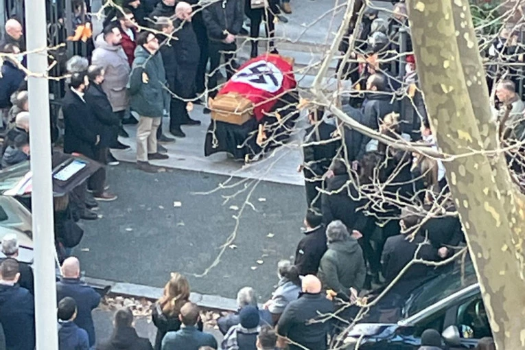 Italijanski portal "Open" je objavio fotografije i video-snimke nastale ispred crkve Svete Lucije nakon sahrane, a na njima je prikazano dvadesetak okupljenih ljudi oko kovčega sa ispruženom desnom rukom u fašističkom pozdravu.