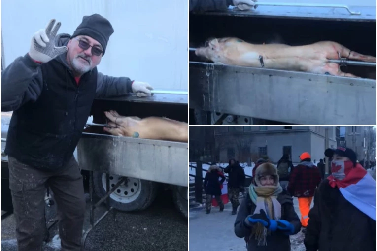 Tako je nekoliko Srba privuklo pažnju kada su ispred parlamenta u Otavi raspalili ražanj i pekli prase.