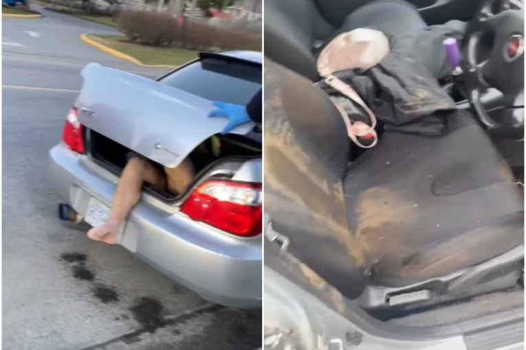 Betani Koker iz Kanade doživela je neprijatno iskustvo kada je otkrila da je u gepeku njenog automobila boravio goli beskućnik.