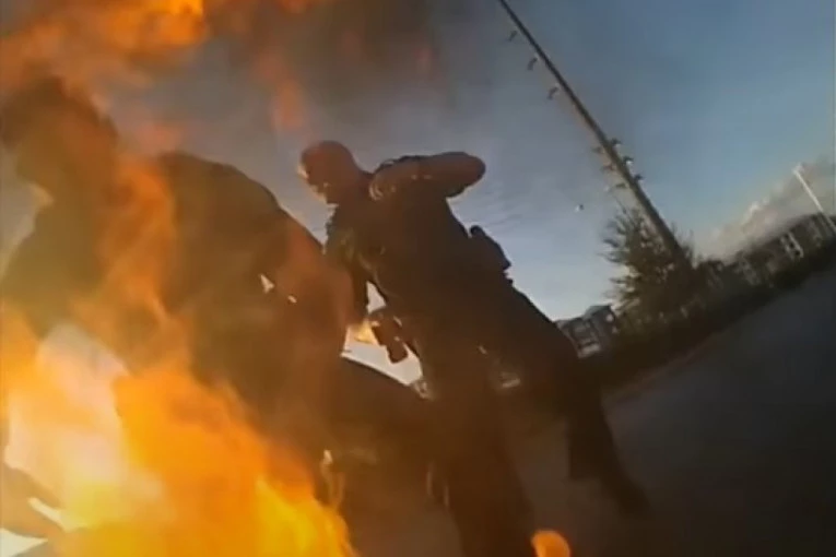 Policajac krenuo šokerom na bajkera na benzinskoj pumpi, mladić se pretvorio u buktinju (VIDEO)