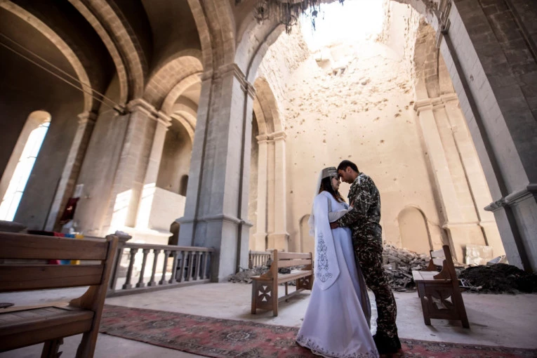 Ovo je prvo venčanje nakon raketnog napada na crkvu, a ceremoniju su pratile desetine medija.