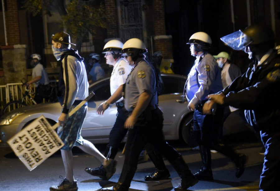 Filadelfijska policija je optužila pojedine demonstrante da su iskoristili proteste kako bi pljačkali prodavnice tokom sukoba sa policijom.