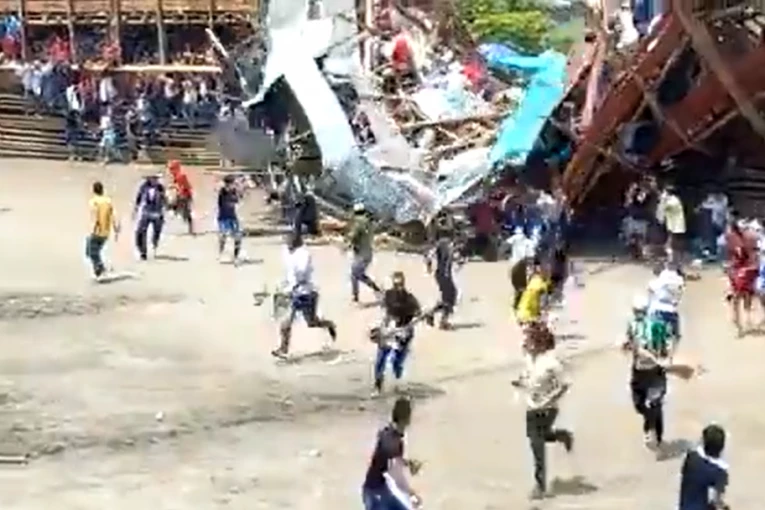 Pojavio se snimak na kojem se vidi kako drvena tribina puna gledalaca pada na stadionu u opštini El Espinal