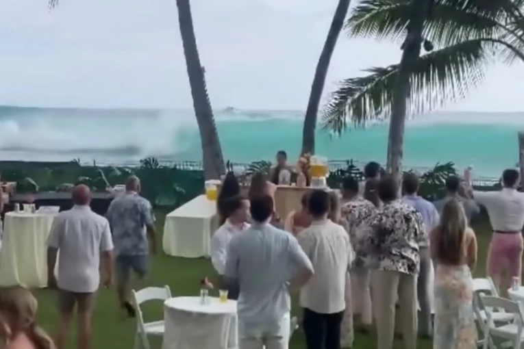 Ogromni talasi prekinuli venčanje na Havajima: Morali da jure stolove i stolice (VIDEO)