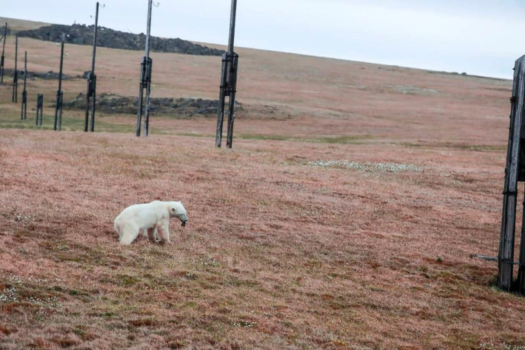 Izgladnela ženka polarnog medveda morala je da potraži pomoć ljudi kada joj se jezik zaglavio u jednoj konzervi.