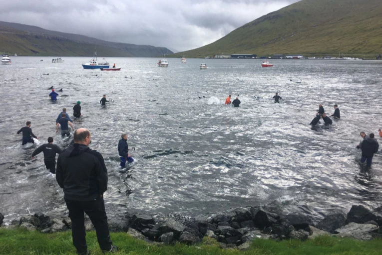 Više od 100 delfina je pre nekoliko dana ubijeno tokom tradicionalnog lova na Farskim ostrvima. More se zacrvenelo nakon što su meštani izboli životinje raznim oštrim predmetima, poput noževa, kuka i koplja.