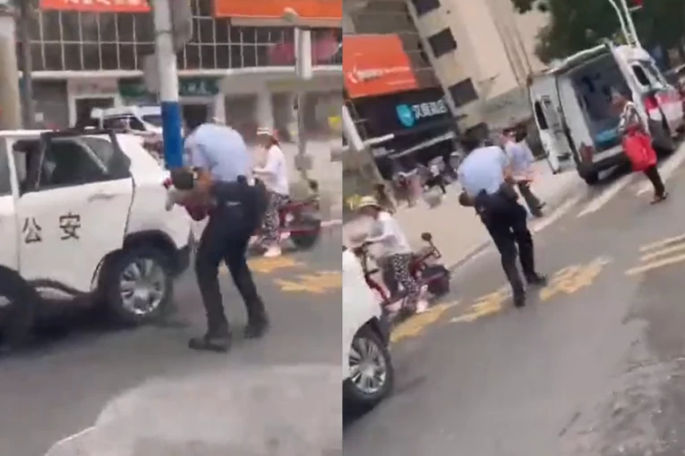 U snimku koji je nastao nedugo nakon napada, a koji je podelio državni Peking dejli, može se videti kako policajac nosi malo dete u naručju do kola hitne pomoći.