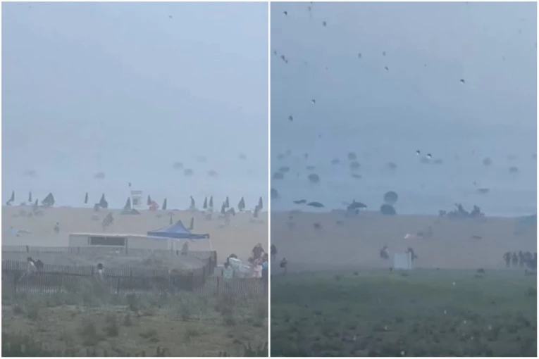 Suncobrani leteli na sve strane: Snažna oluja se sručila na plažu (VIDEO)