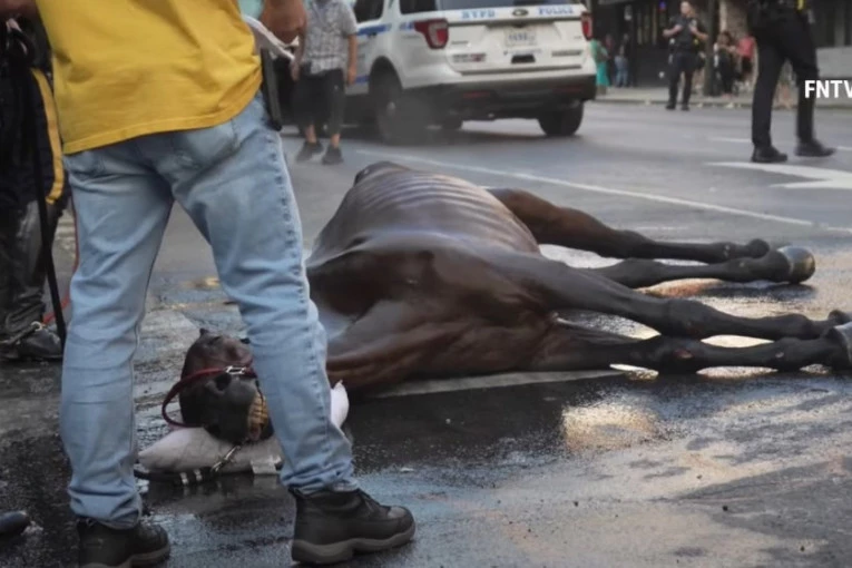 Konj se srušio od iznemoglosti usred Njujorka, a vlasnik nastavio da ga šiba: Tek posle sat vremena uspeli da ga vrate u život (VIDEO)