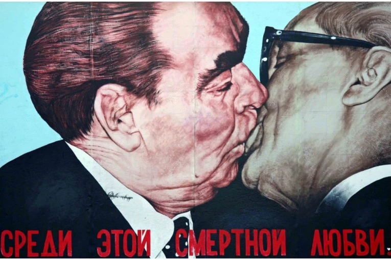 Ipak, najpoznatiji poljubac Brežnjeva je svakako onaj s vođom Istočne Nemačke Erihom Honekerom 1979. godine, koji je postao besmrtan zahvaljujući slikaru Dmitriju Vrubelju.