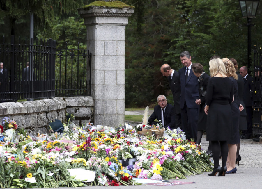Troje kraljičine mlađe dece, princeza Ana, princ Endru i princ Edvard su među članovima porodice koji su izašli pred kapije zamka Balmoral da pogledaju poruke i bukete koje su ostavili građani koji žale zbog smrti Elizabete II.