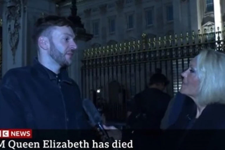 Svi pričaju o bizarnom snimku na kome se vidi kako dopisnica BBC intervjuiše prolaznika "iz noćne smene” koji je odlučio da se uputi u Bakingemsku palatu u noći posle smrti kraljice.