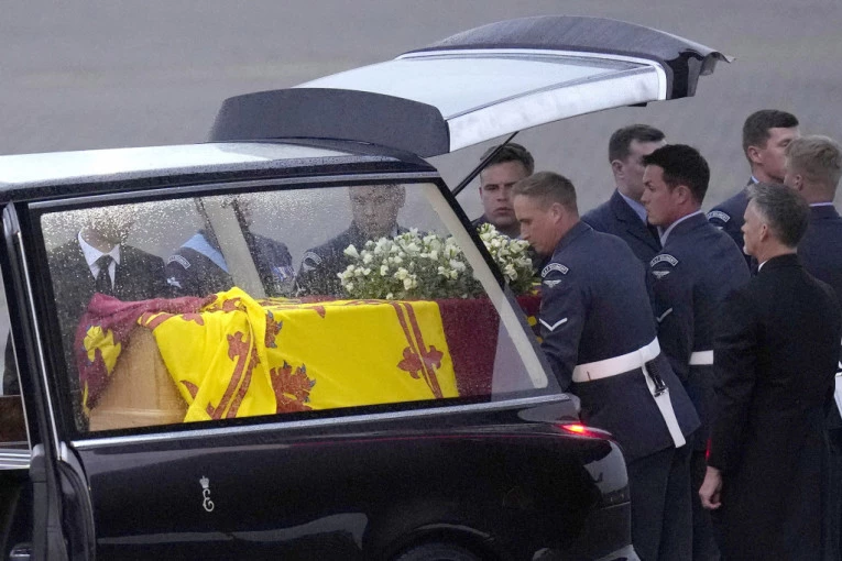 Avion RAF Globemaster C-17 koji je nosio kovčeg Njenog veličanstva iz Edinburga sleteo je u RAF Northolt u zapadnom Londonu oko 19.55 popodne, nakon što je provela 24 sata u katedrali Svetog Džajlsa, gde je desetine hiljada ožalošćenih odalo poštu najdužem vladajućem monarhu.