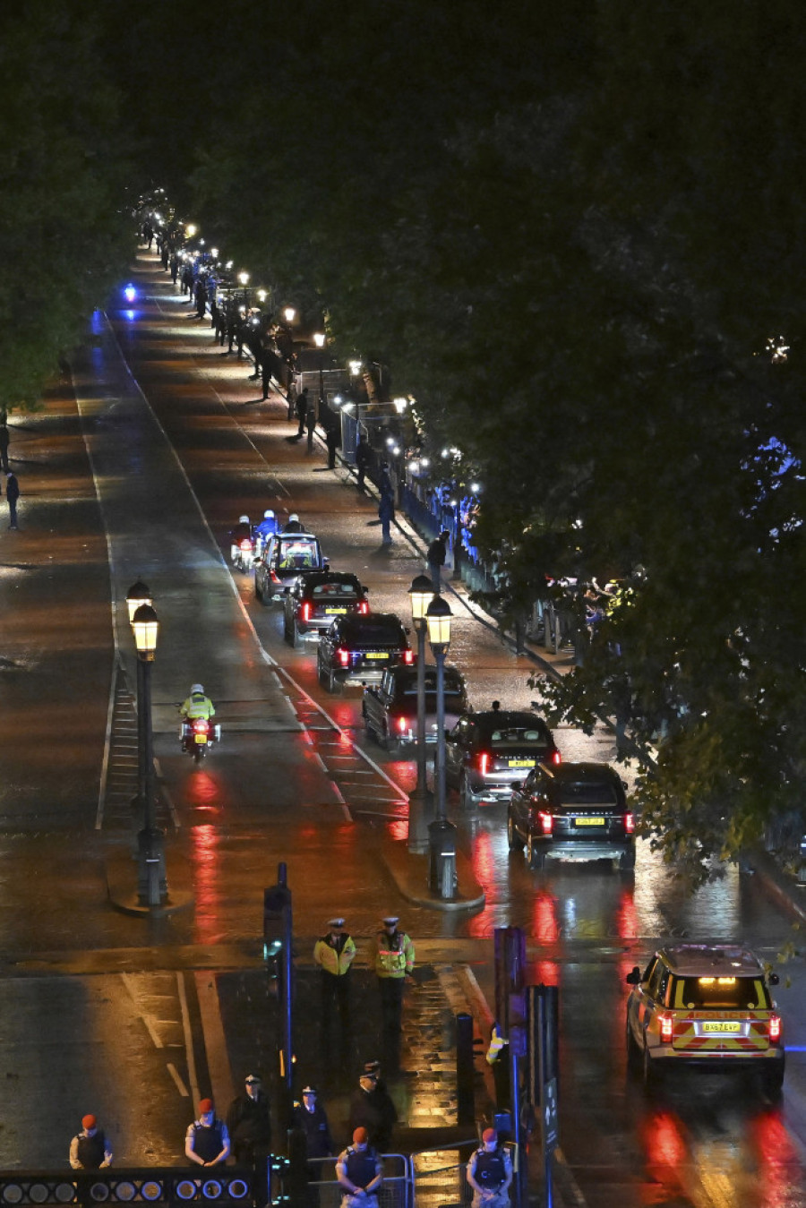 Građani su klicali i pljeskali na kiši dok su nova državna mrtvačka kola putovala niz Konstitucijsko brdo i oko Memorijala kraljice Viktorije gde su usporila, a zatim prošla kroz kapiju palate i kroz centralni luk. Polaznici su se zaustavljali pognutih glava pri prolasku vozila, dok je policajac na kapiji salutirao.